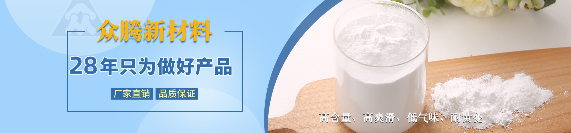南通海門眾騰新材料科技有限公司與德國ZOTN公司合作,始建于1995年,地處長江三角洲與國際大都市上海隔江相望,座落于江蘇省南通市海門區(qū)。公司固定資產2000萬元,具備先進、齊全的科研設施,擁有一批已積累多年開發(fā)、技術應用經驗的專業(yè)技術人員,同類產品采用目前國際先進的自動控制裝置。產品主要有芥酸酰胺、硬脂基芥酸酰胺、油酸酰胺、硬脂酸酰胺、塑料光亮劑、塑料抗靜電劑、EBS、EBO、開口劑等,廣泛應用于生物降解材料、母料、塑料、吹膜、PE粉末涂料、 油墨等行業(yè),年銷售量3000噸,出口量占60%。公司產品均已通過SGS綠色環(huán)保檢測,符合歐盟ROHS環(huán)保指令,并達食品、醫(yī)藥級要求。忠誠合作,和諧創(chuàng)造!讓我們攜手并進,共創(chuàng)美好明天!